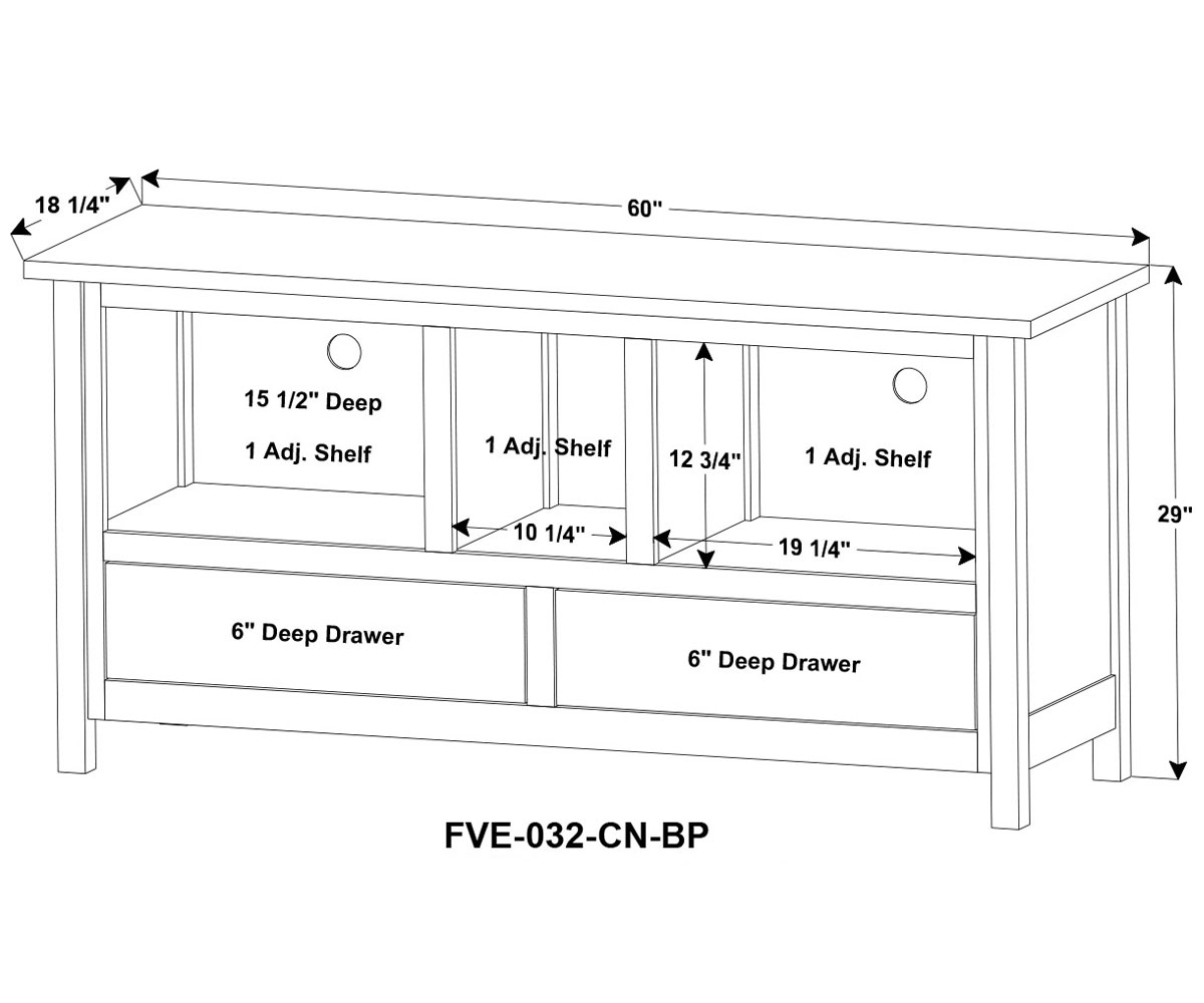 Dimensions: 60″W x 18¼”D x 29″H