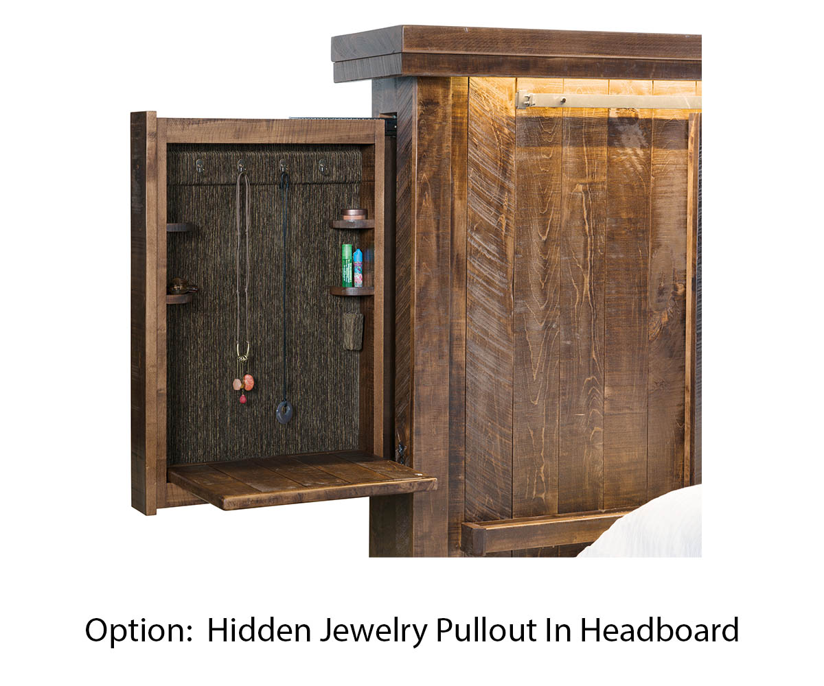 • Hidden jewelry pullout in the headboard
