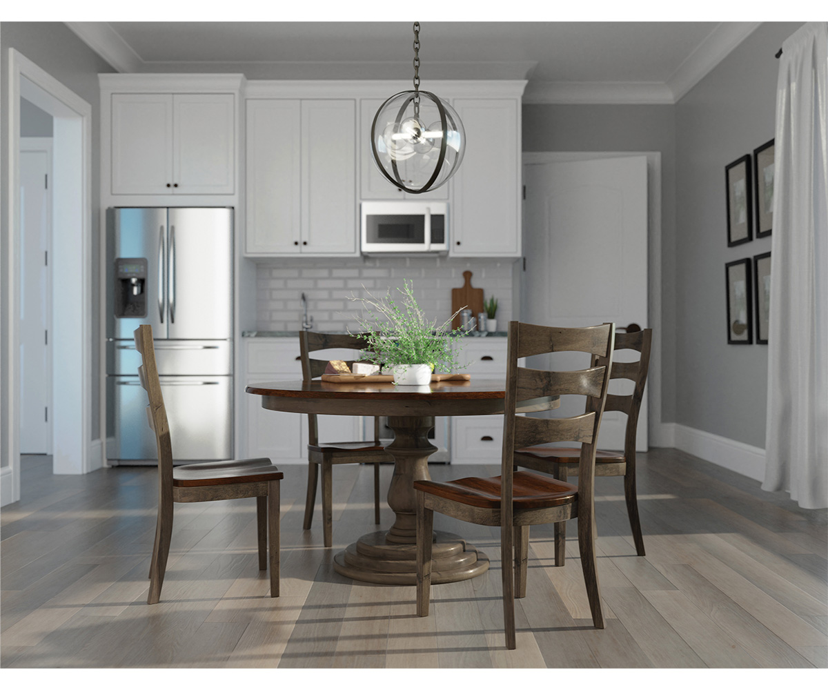 • 42″ Round: Solid Top, Seats 4